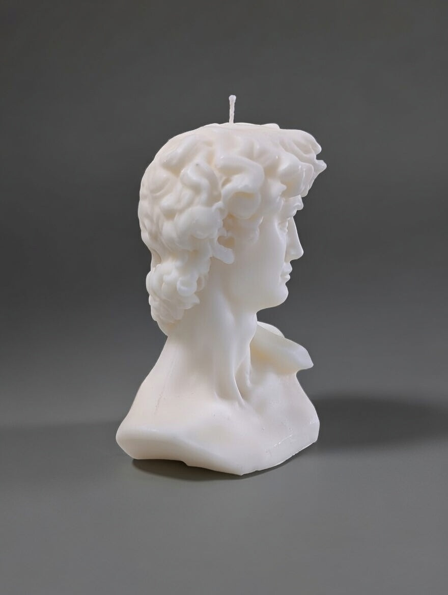 Elevate your space with this stunning Michelangelo David bust candle — a beautifully detailed replica of the iconic Renaissance masterpiece by Michelangelo. Crafted with intricate curls, serene expression, and classical proportions, this David sculpture candle captures the timeless strength, youthful beauty, and anatomical perfection of the original marble statue.